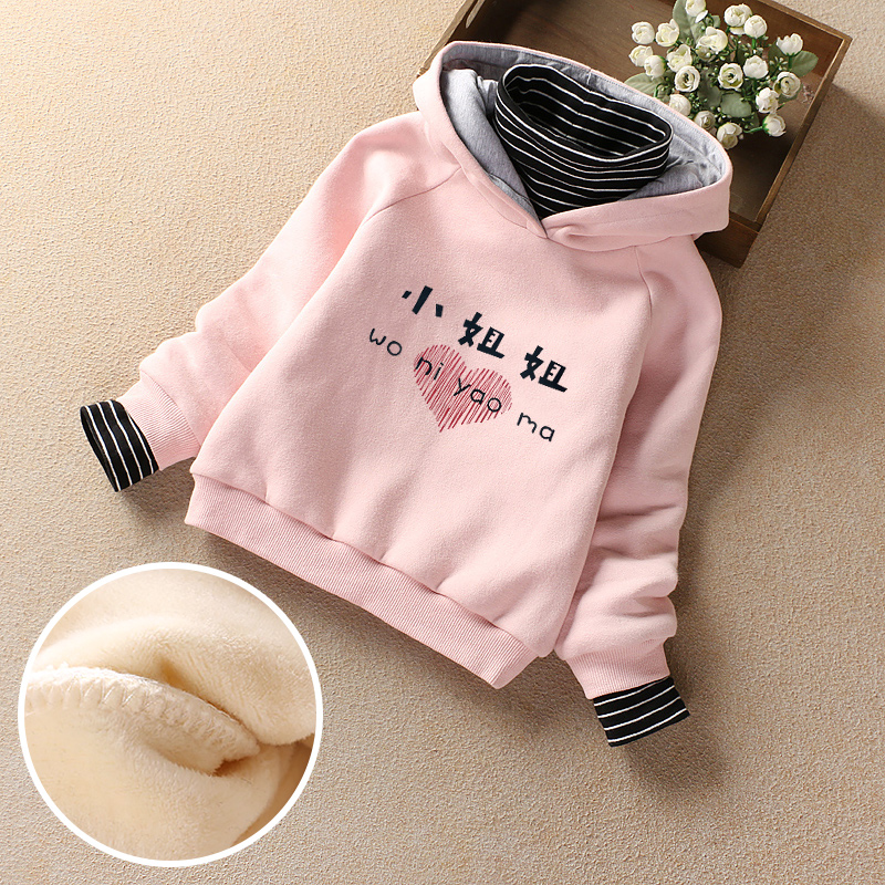 Girls fleece sweater 2022 new autumn and winter children's foreign style thickened top middle-aged and older children's hooded warm bottoming shirt