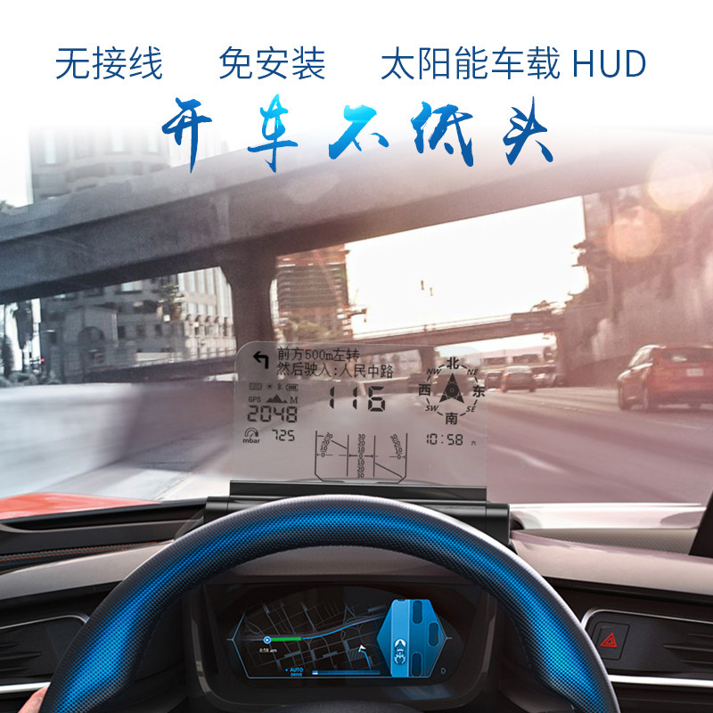 Car hud head-up display Car universal wireless solar navigation speedometer Compass altitude meter