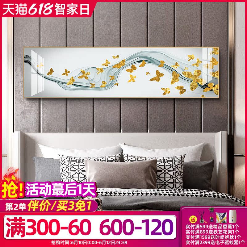Dream Butterfly Fish Modern Abstract Bedroom Decoration Painting minimalist horizontal version strip headboard painted light and luxurious golden room Soft