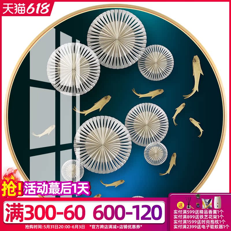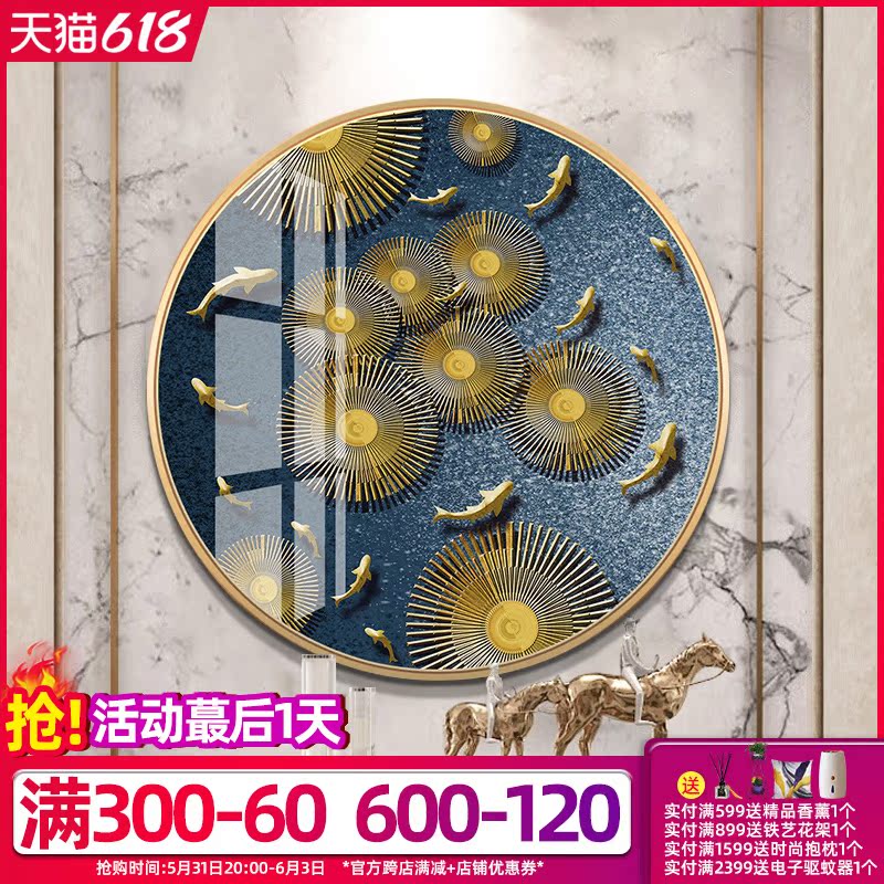Nine Fish Plot Corridor End Genguan Decoration Painting New Chinese Style Entrance Aisle Atmospheric Dining Hall Hung Painting Round entrance painting