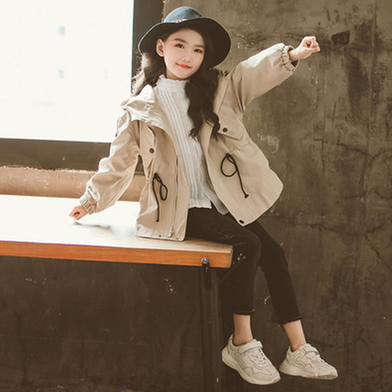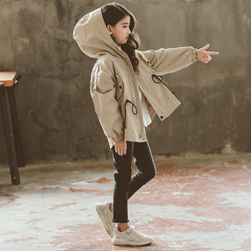 Girls ' windbreaker British wind 2021 new Foreign school children's clothing Korean version of the big child net red medium and long version of the coat top tide