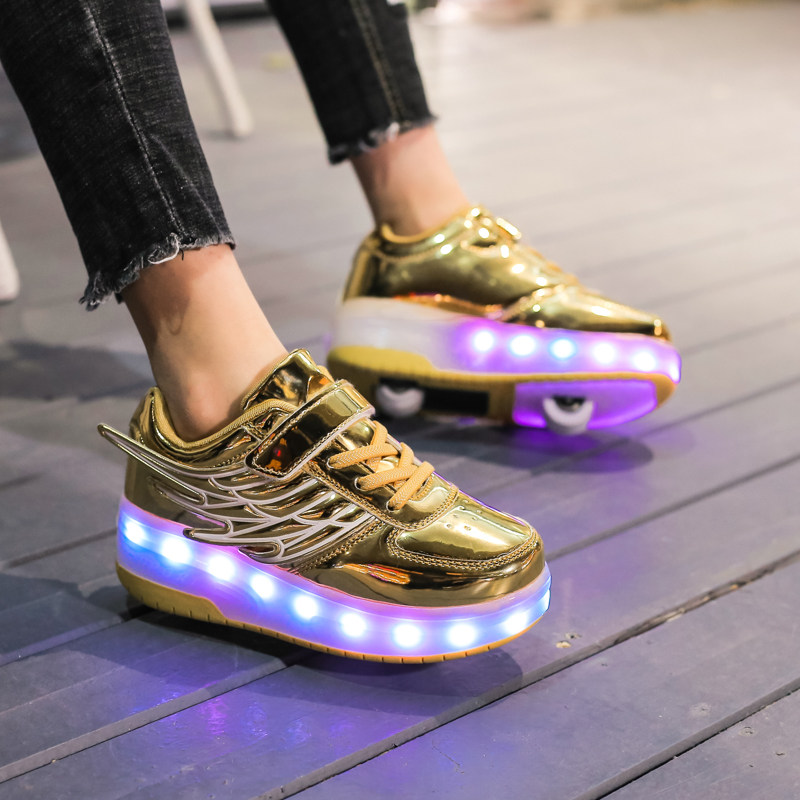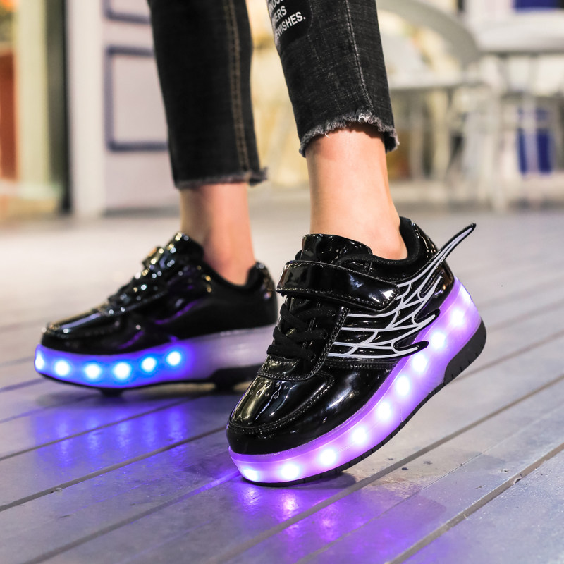 Winter children's runaway shoes Single and double wheel deformation shoelaces Wheel shoes Men's and women's children's walking shoes Burst walking shoes Pulley shoes