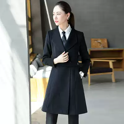 Office clothes woolen coat women's long version of work clothes slim body thick sample House Display Center 4s shop woolen coat winter