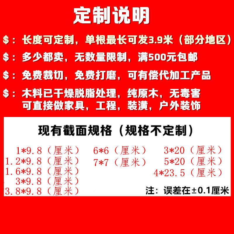 Zhangzi Pine Wood Square Column Log Sheet Solid Wood Keel Frame Wood Stick Wooden Bar Stairway Pedal Partition Diy Customize