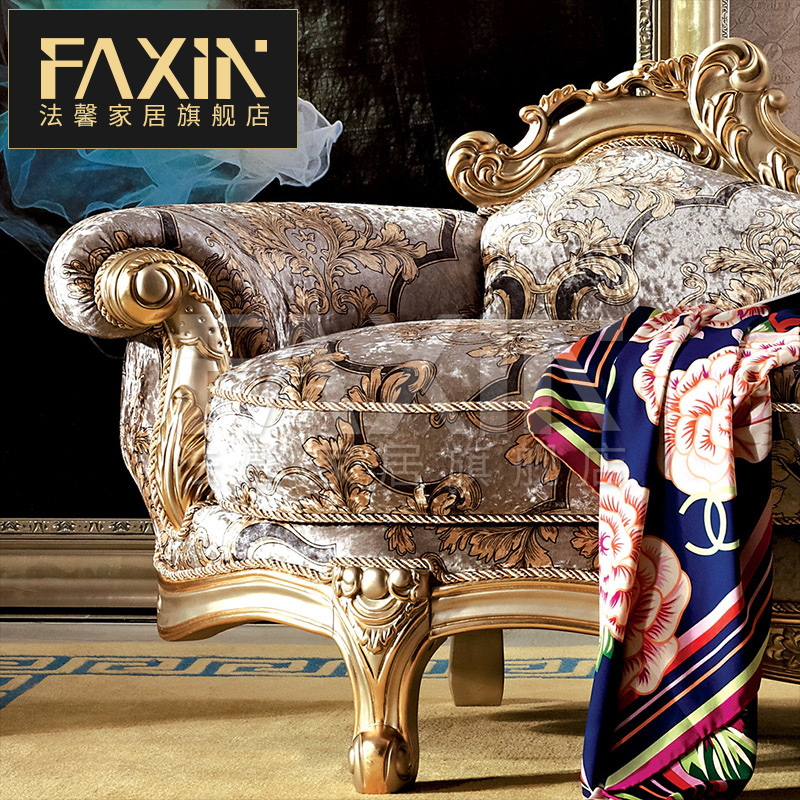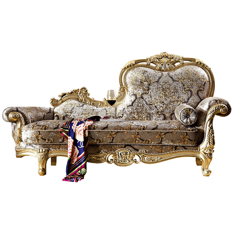 Italian French court solid wood carved fabric chaise longue Dapingshu European villa bedroom lazy sofa