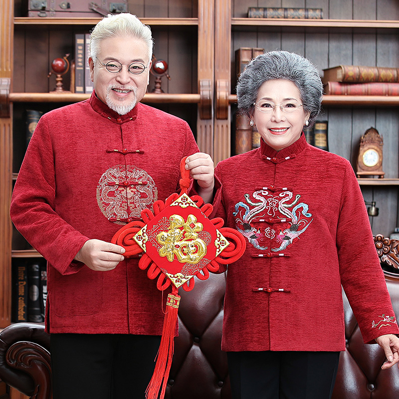 Couple dress Tang dress Men's and women's suits Middle-aged birthday grandparents wedding clothes Old people autumn and winter coats