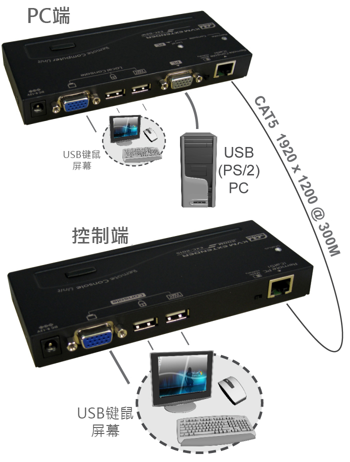 High-end KVM Taiwan Rextron EXC-3021VGA single screen extender 300 meters network cable transmitter