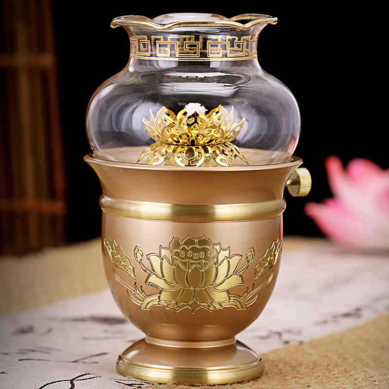 Pure copper ghee lamp household Lotus lamp liquid ghee lamp living room wind long lamp candlestick