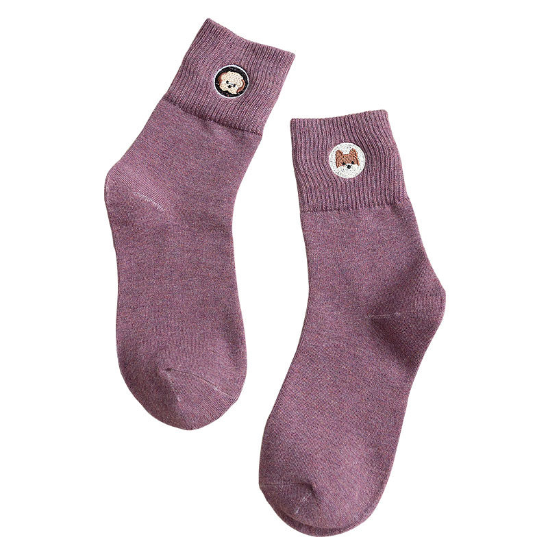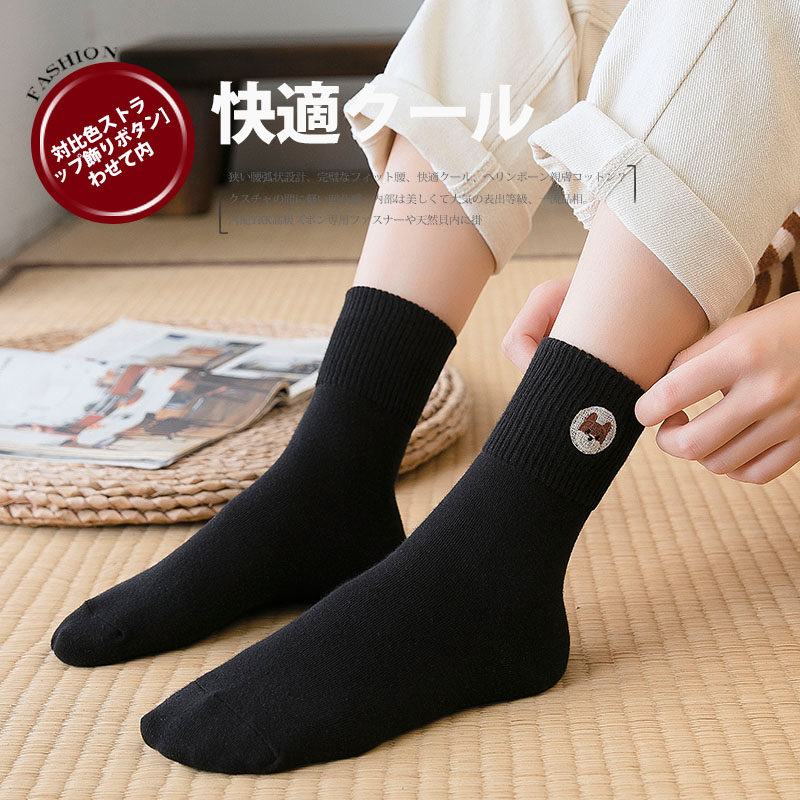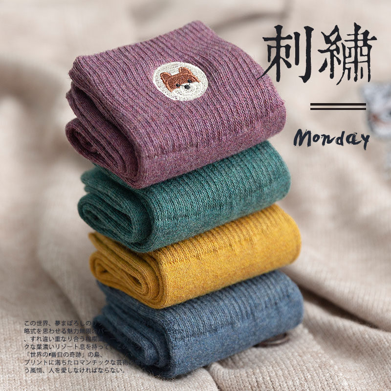 Day-series socks female midbarrel socks thin cotton quality autumn and winter Korean version College windy pooch Cartoon Embroidered Skateboard Tide