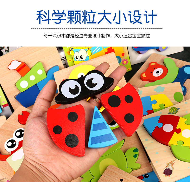 Hand Grip Board Infant Jigsaw Puzzle Children Wooden Three-dimensional Baby Puzzle Force Building Blocks Toy Boy 2-3-4 Cognition
