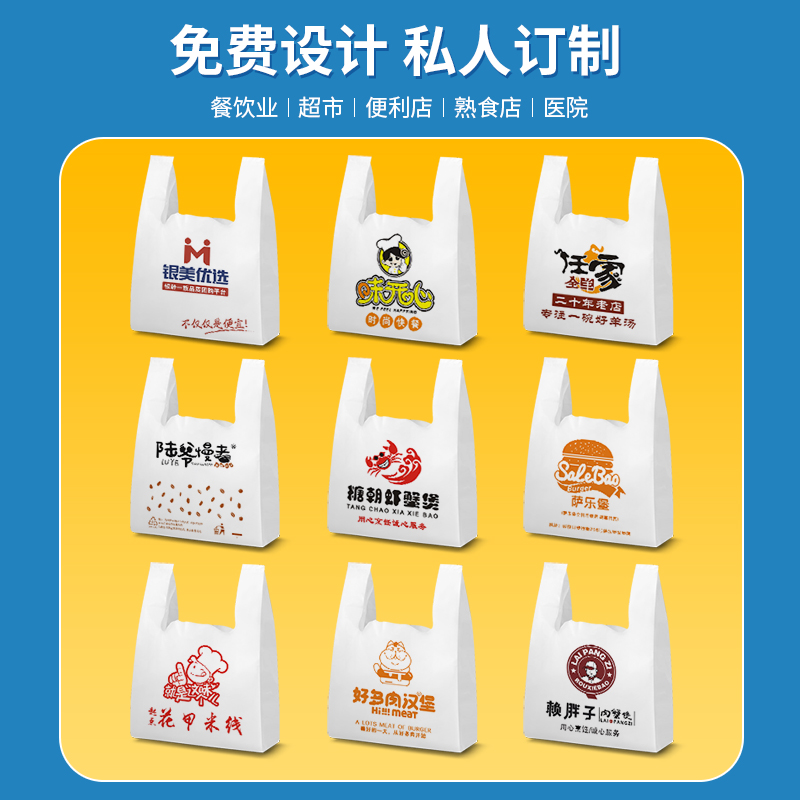Plastic bag custom-made printed logo supermarket degradation Hand convenience takeaway packaging bag booked for food packaging bag-Taobao