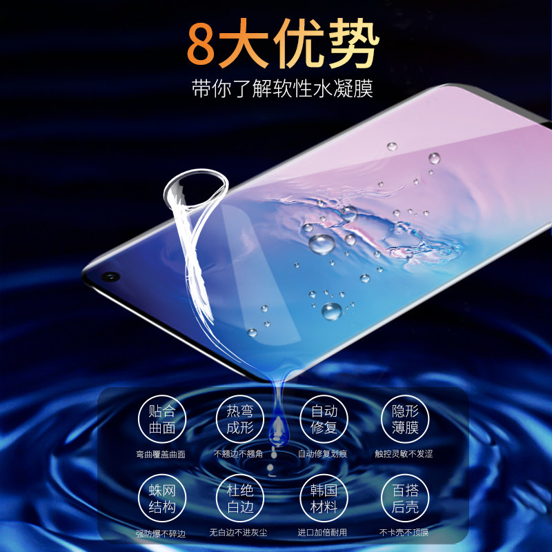 Samsung S10 TOUGHENED film s10 Water Condensation Film Fullscreen s9 s8 Curved Bend 5g All-pack plus no white edge S10eUV Screen Paulods curved screen anti-fall Blu-ray anti-explosion fingerprint