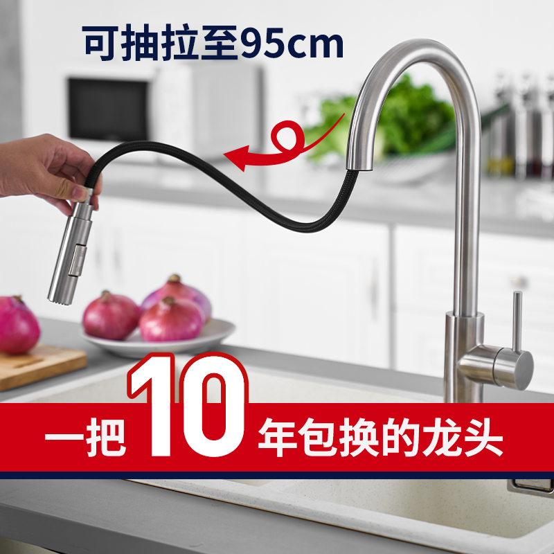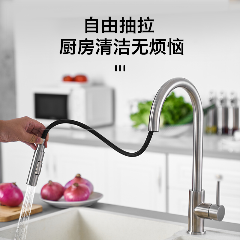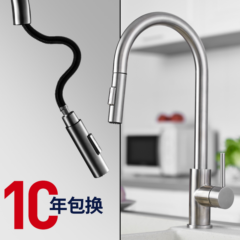 Wankang kitchen household faucet Pull-out hot and cold wash basin 304 stainless steel sink rotating faucet hot and cold