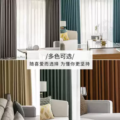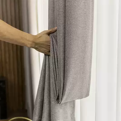 Gray cotton and linen curtain fabric Nordic style blackout curtain finished product Simple modern hook-up living room bedroom sound insulation