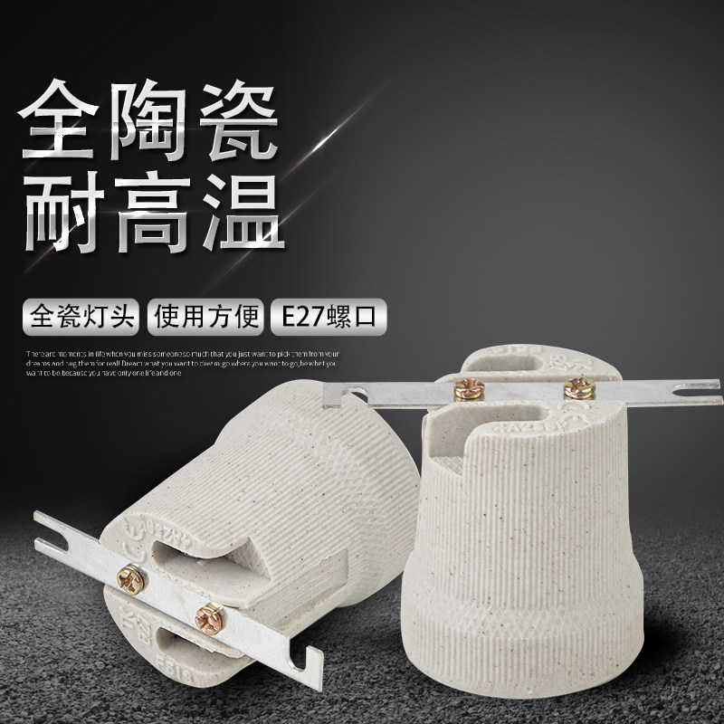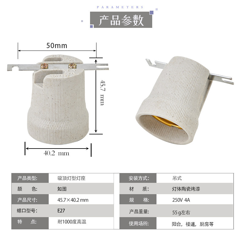 Ceramic lamp head with bracket high temperature resistant suction top flat base ceramic pendant lamp E27 screw mouth heating ceramic lamp holder