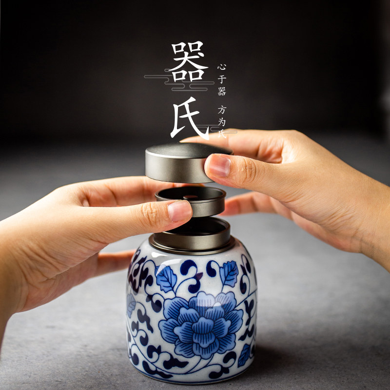 Instrumental green flower porcelain tea leaf pot ceramic home sealing pot deposit tea pot small number portable packaging loose tea storage tea set