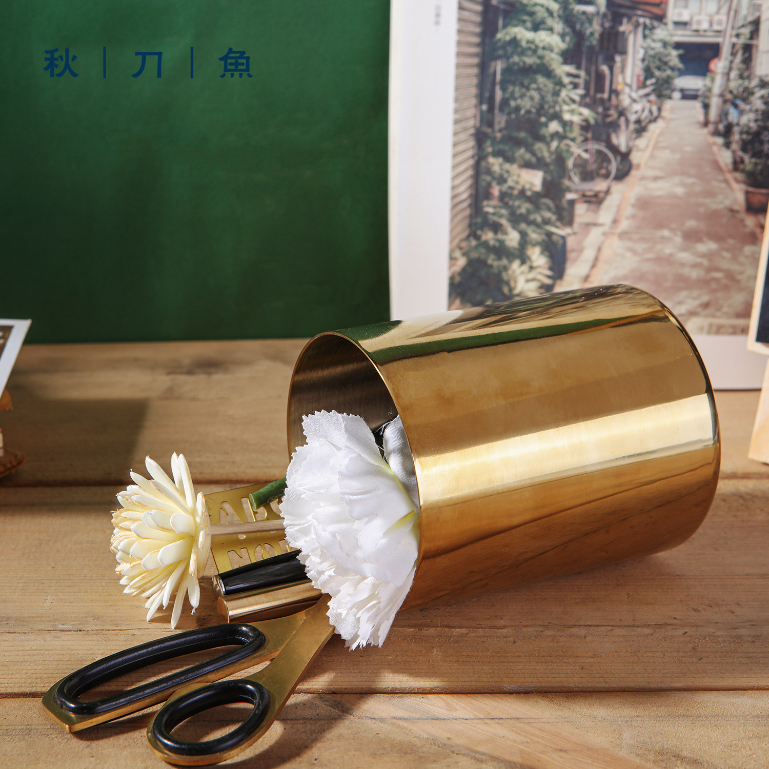 Aki knife fish brass colour collection cylinder pen cylinder metal reception cup of Nordic wind in desktop receiver cans for iron pot piece of iron pot - piece plug - in cylinder gold round flower jacket metal reception cup