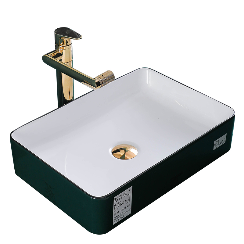 Table basin square wash basin ceramic thin edge retro green cosmetic room washroom round Nordic small balcony