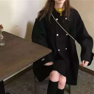 Cloak woolen jacket forest line Joker light mature wind cold wind black coat short model autumn and winter 2021 New