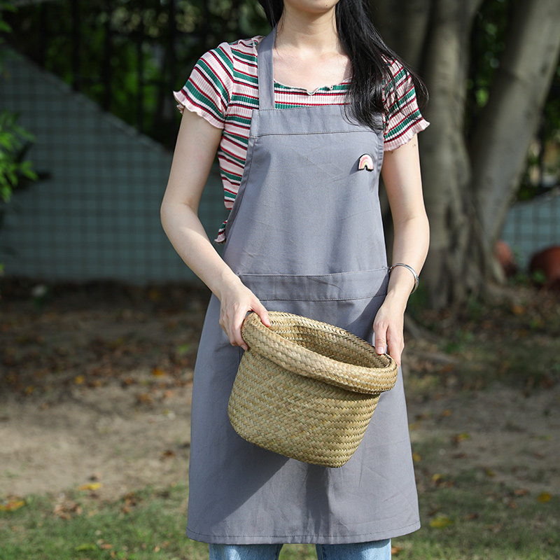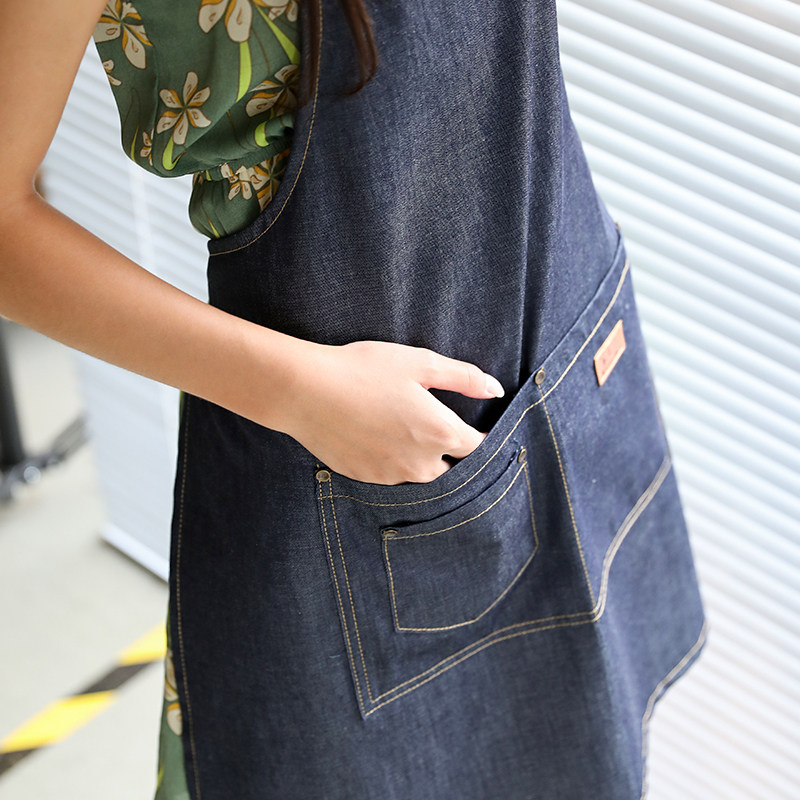 Light blue denim cotton beige rainbow collar cotton black cotton chocolate rainbow collar cotton navy blue dolphin apron Khaki knife and fork pattern apron