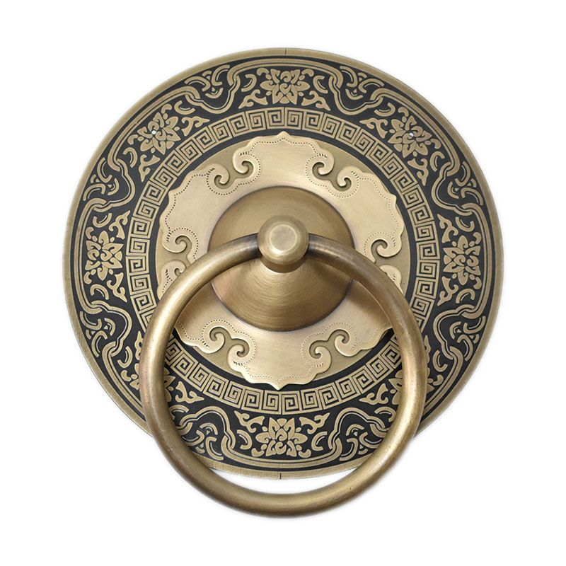 Pure copper gate handle Chinese style ancient construction door handle old imitation ancient round pull ring retro ruyi with flower full copper door ring