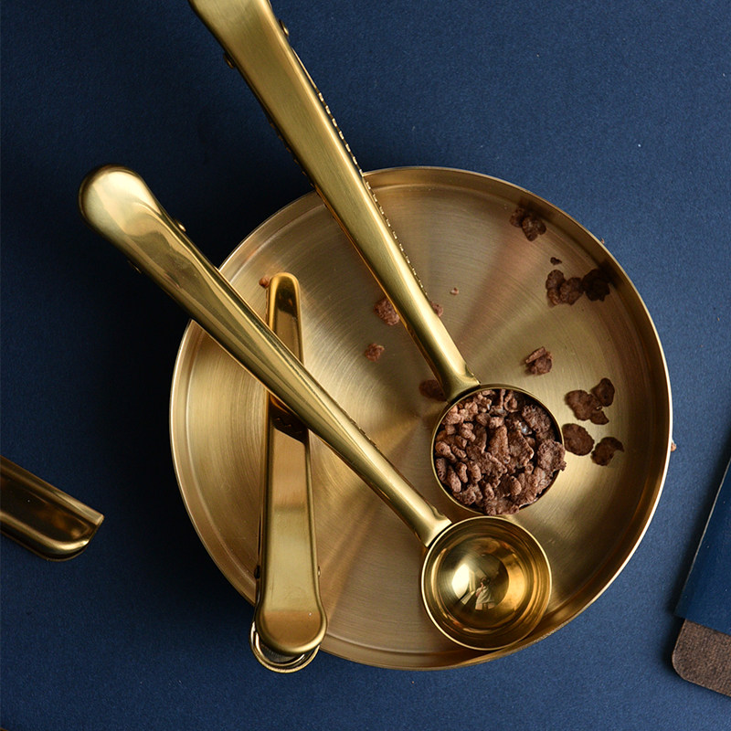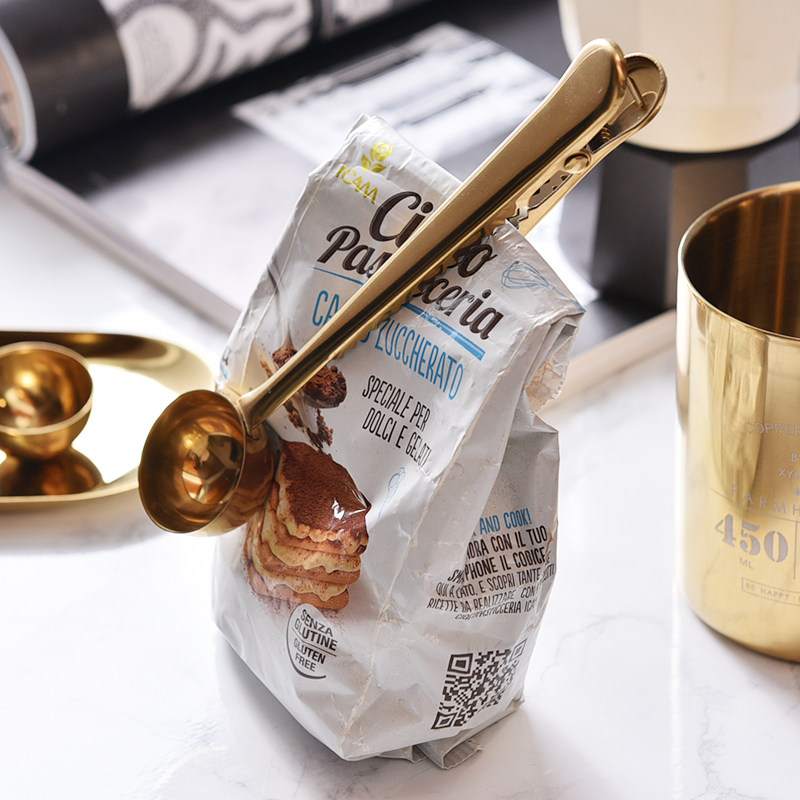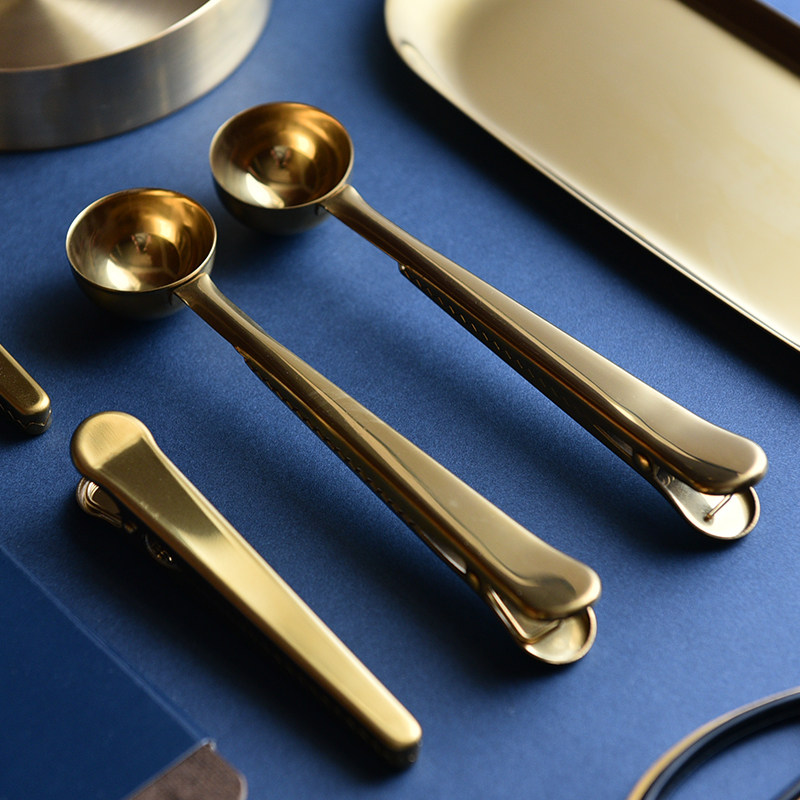 Creative Nordic ins coffee spoon Tea spoon Measuring spoon Stainless steel coffee spoon Mouth clip One-piece sealing clip