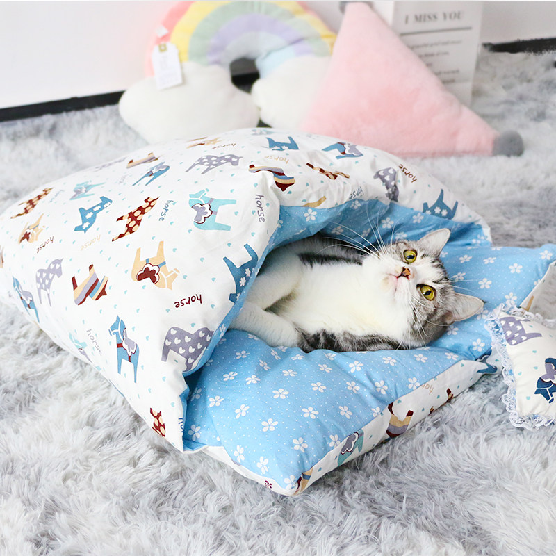 INS Korean style cat's nest Cat sleeping bag Detachable and washable closed cat's nest Pet's nest Four seasons universal kennel Cat supplies