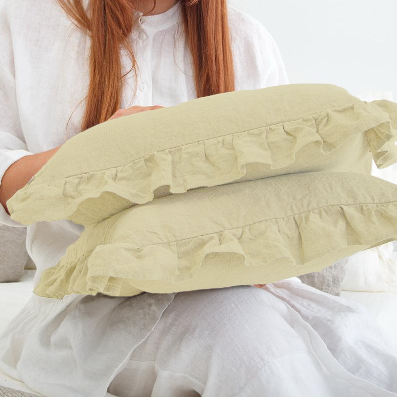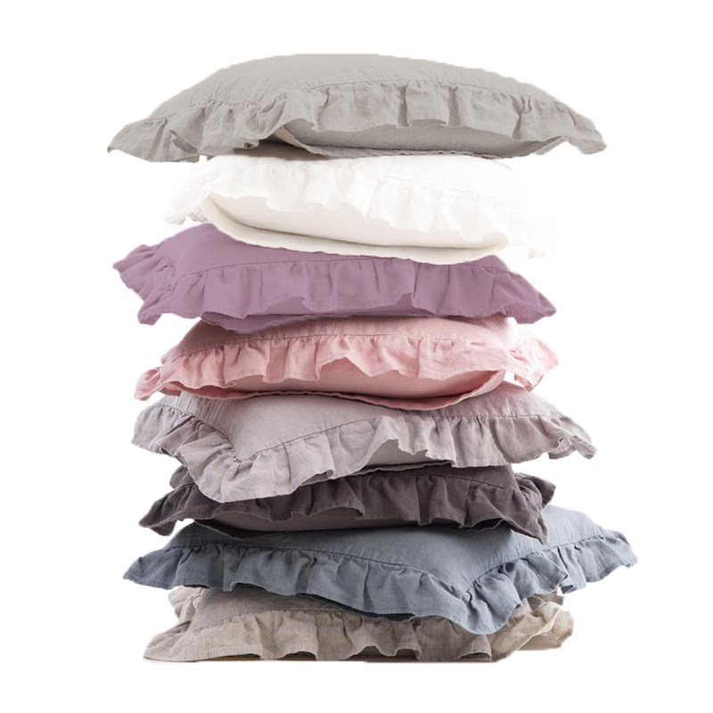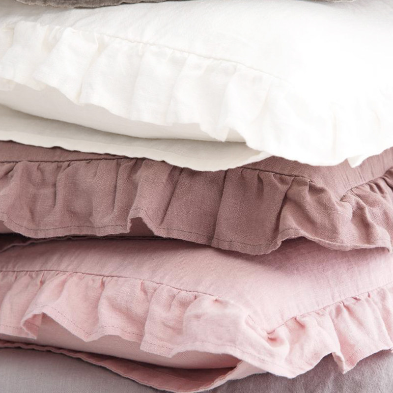 Pure linen lotus leaf pillowcase single pillow with solid color washed simple cotton and linen breathable antibacterial and anti-mite bedding