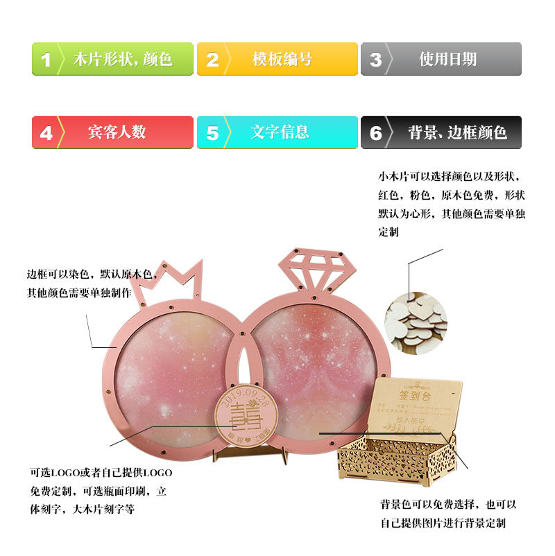 Pink Constant Love Diamond Ring Creativity Sign to box Shaking Sound Same web Red knots wedding wedding wedding Wedding Wedding Fingerprint Wood Chip signed to this table