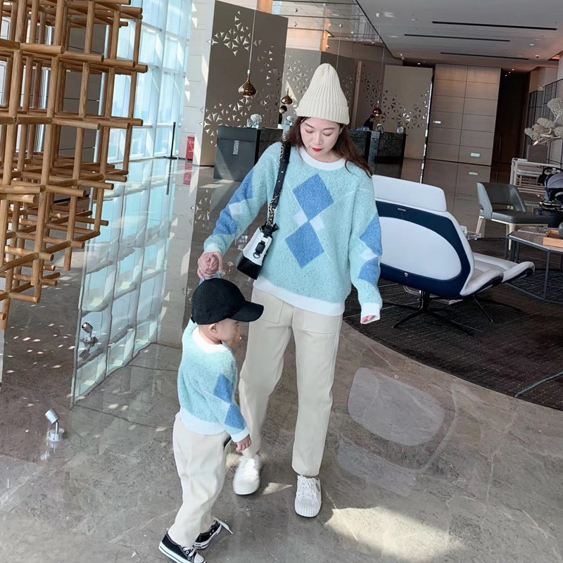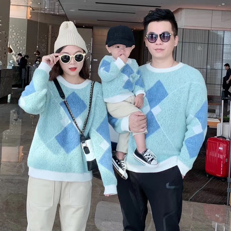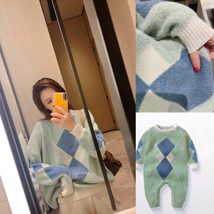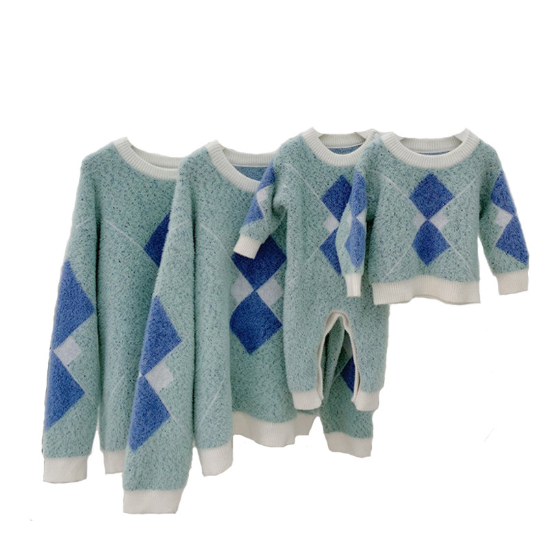 Parent-child sweater autumn and winter 2022 new trendy mother and child mother daughter western style baby romper for a family of three and four diamonds