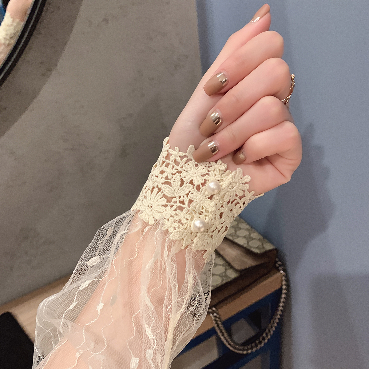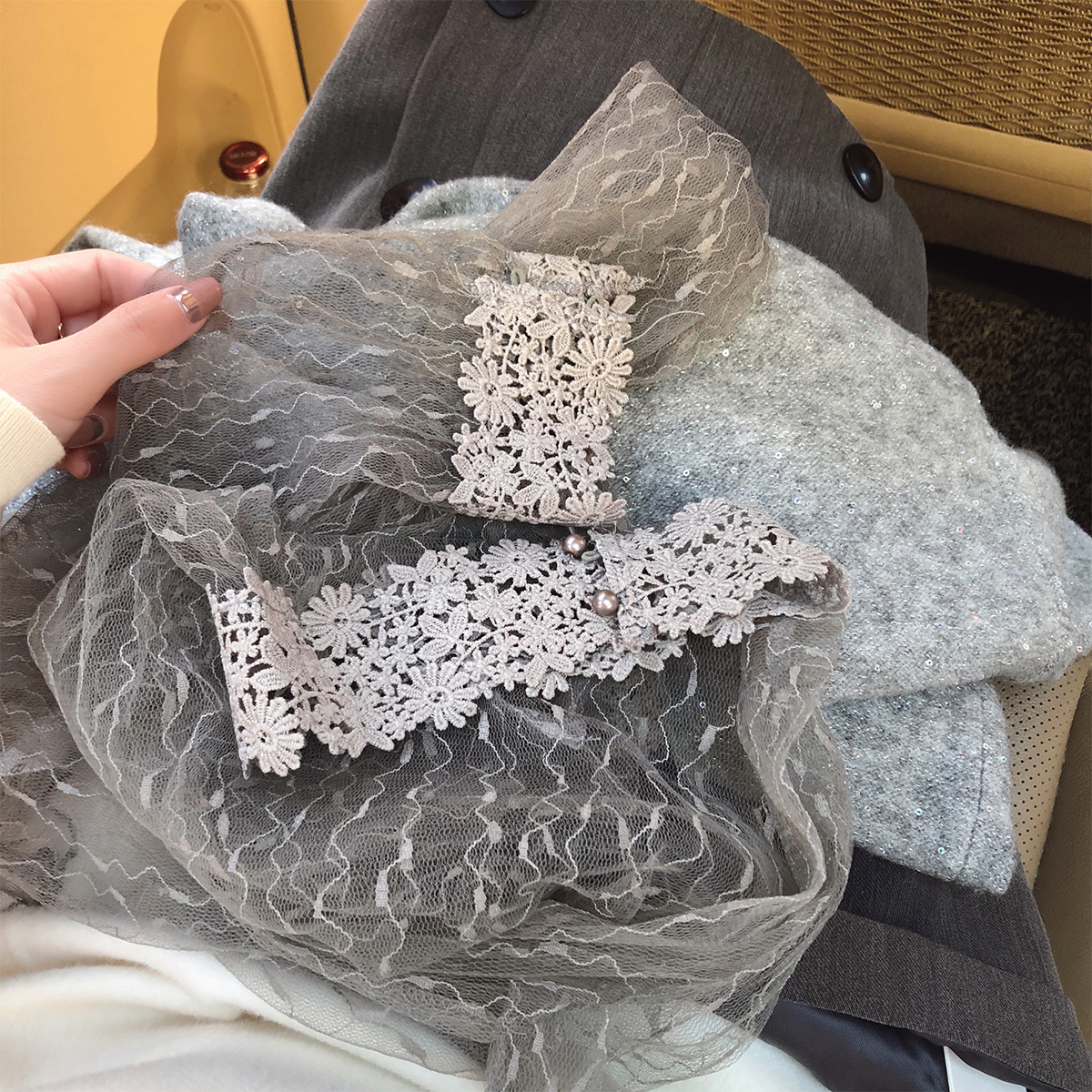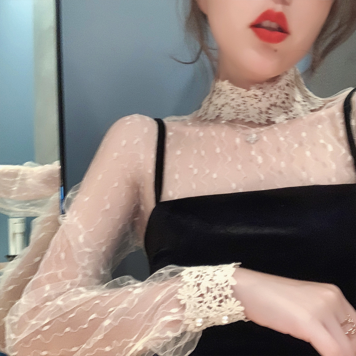 ByYou 2019 Autumn and winter sexy semi-turtleneck lace base shirt women's long-sleeved mesh yarn with Foreign school hollow top