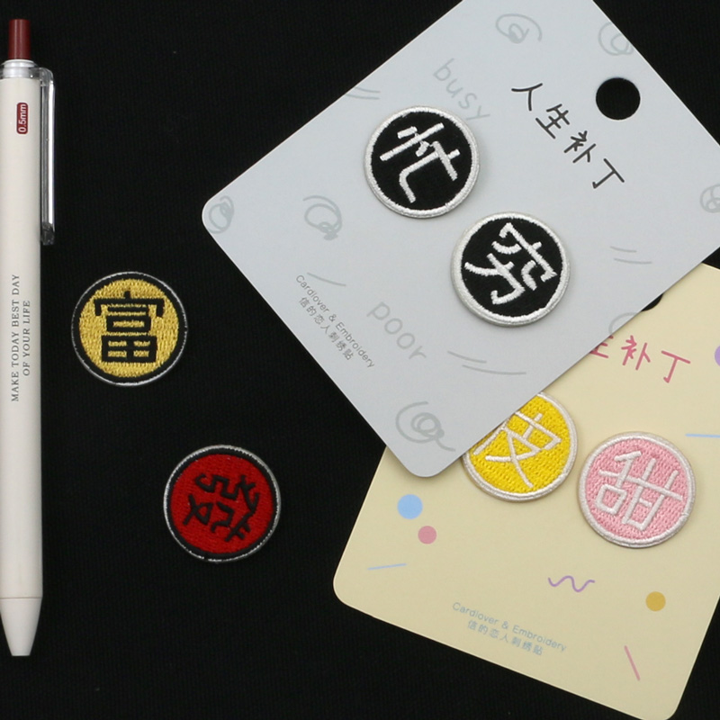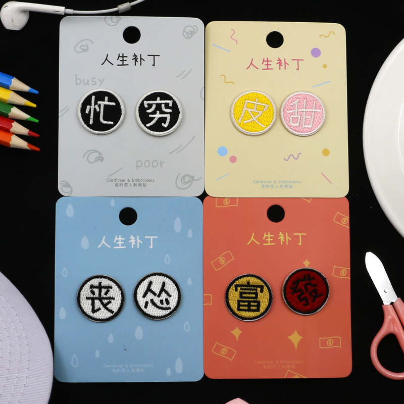 Tingle embroidered fabric with living status 100 lap clothes bag Decorative Handbill Mood Self-Glued Embroidery Breaking Hole and Hole Sticking