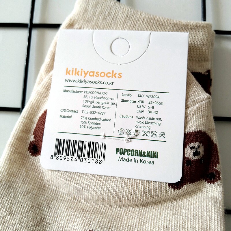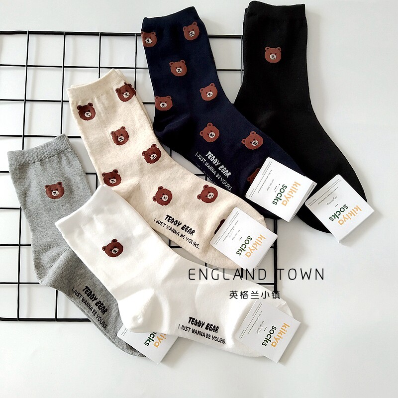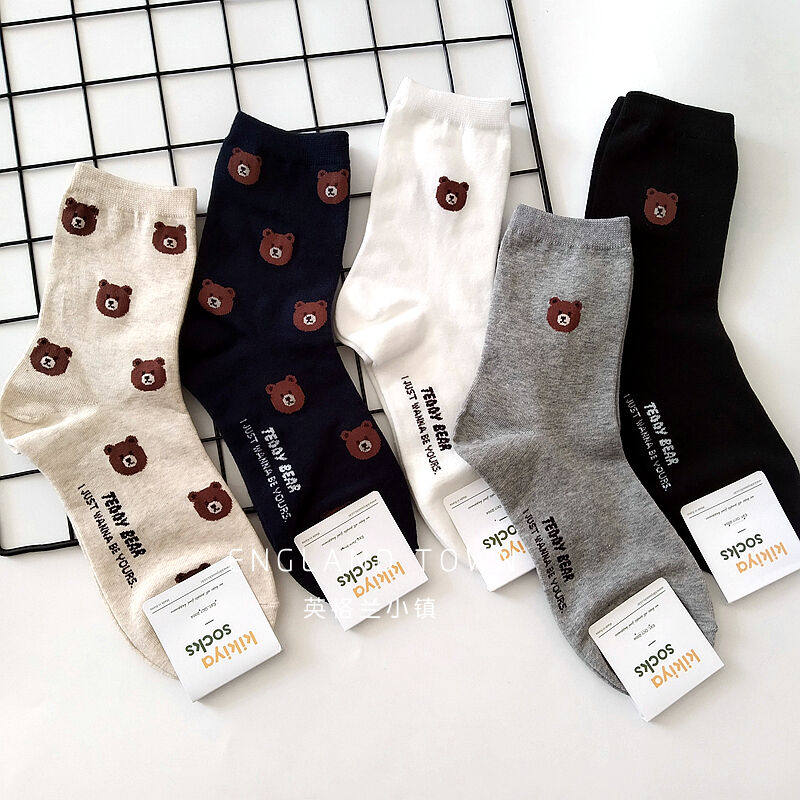 South Korea's Dongdaemun couple bear head women's socks men's middle tube autumn and winter cotton long cute cartoon ins flushing zodiac year