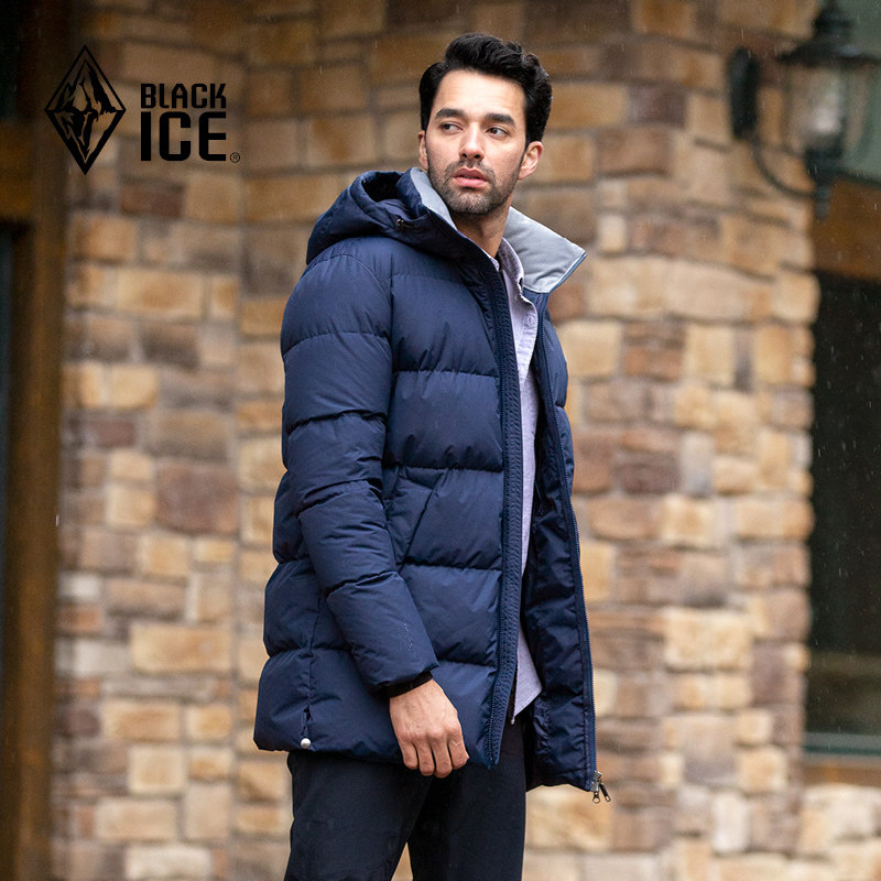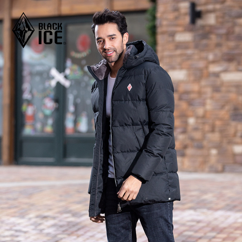 Black Ice's new F8516 men's mid-length thick down jacket winter cold-proof hooded warm down jacket