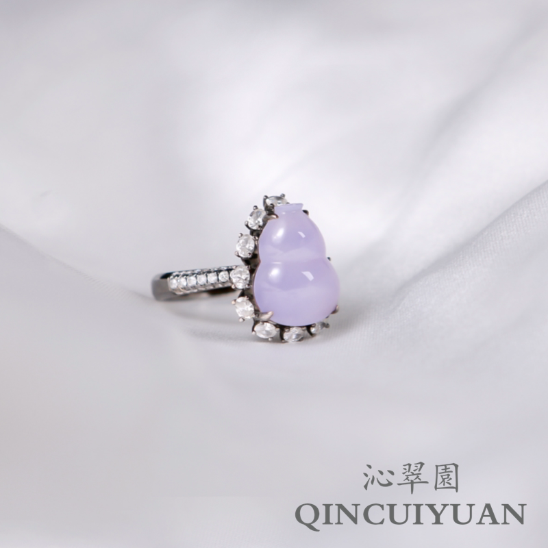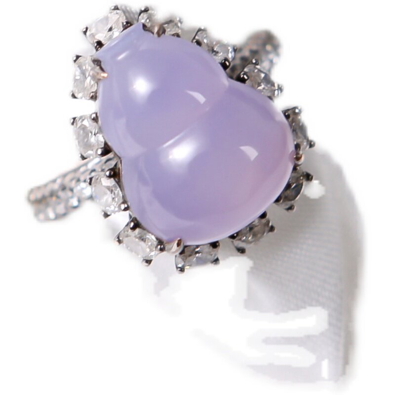 Myanmar natural jadeite A high ice violet powder purple glow gourd ring Fulu jadeite high goods