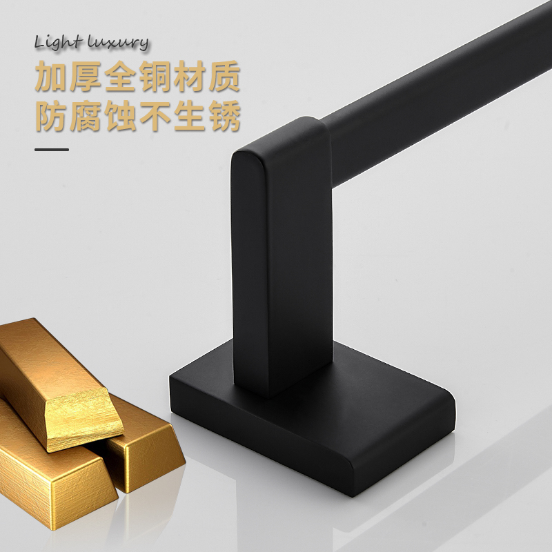 Black towel pole full copper towel rack Nordic bathroom Hardware Bathroom Handicap Toilet Wall Handscarf