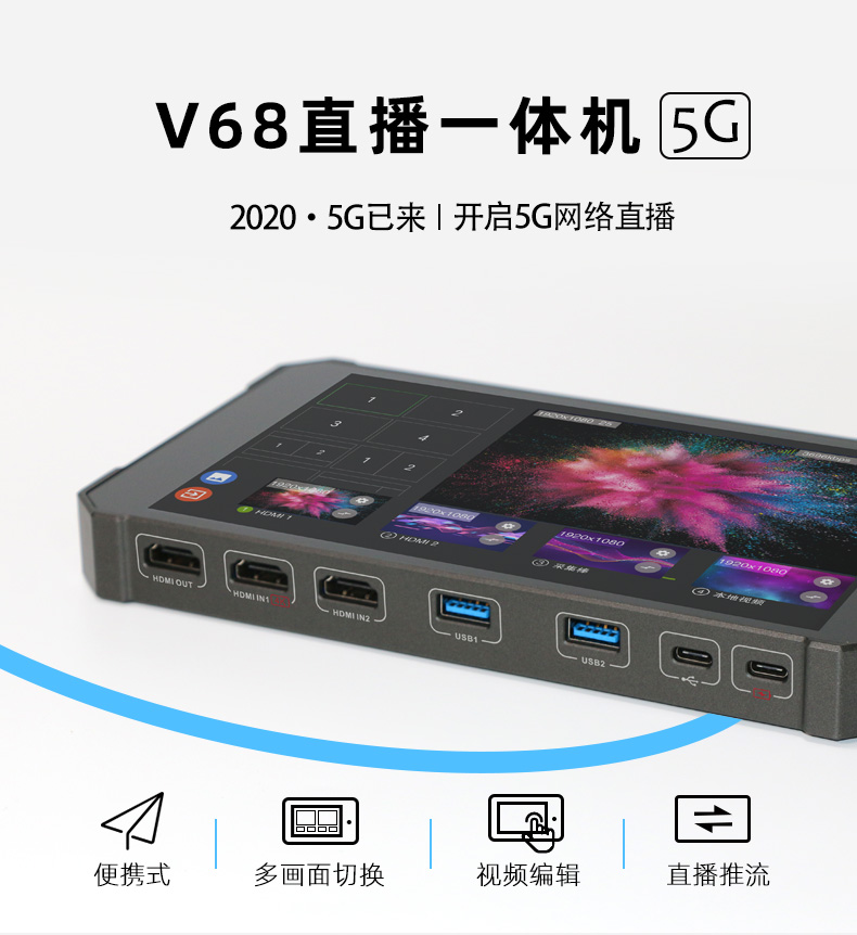 He Miao V68 video live encoder HDMI live machine 5G live guide live machine He Bird V68 four-way guide switcher Shake sound quick hand WeChat Taobao aggregation live push stream pull stream