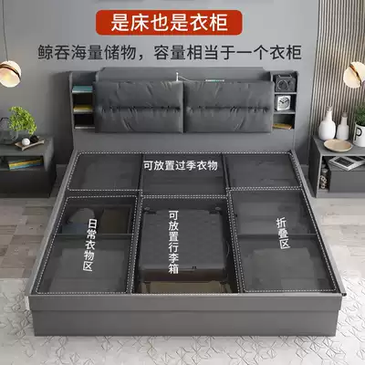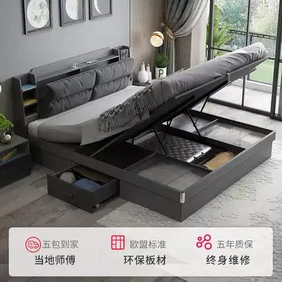 Nordic simple double bed master bedroom storage one meter five bed air pressure high Box storage bed modern 1 35 meter cloth art bed