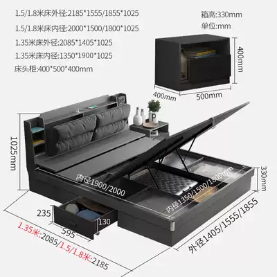 Gray pneumatic high box bed (cloth backrest) gray pneumatic high box bed (cloth backrest) 1 bedside table gray pneumatic high box bed (cloth backrest) 2 bedside table gray pneumatic high box bed (cloth backrest)