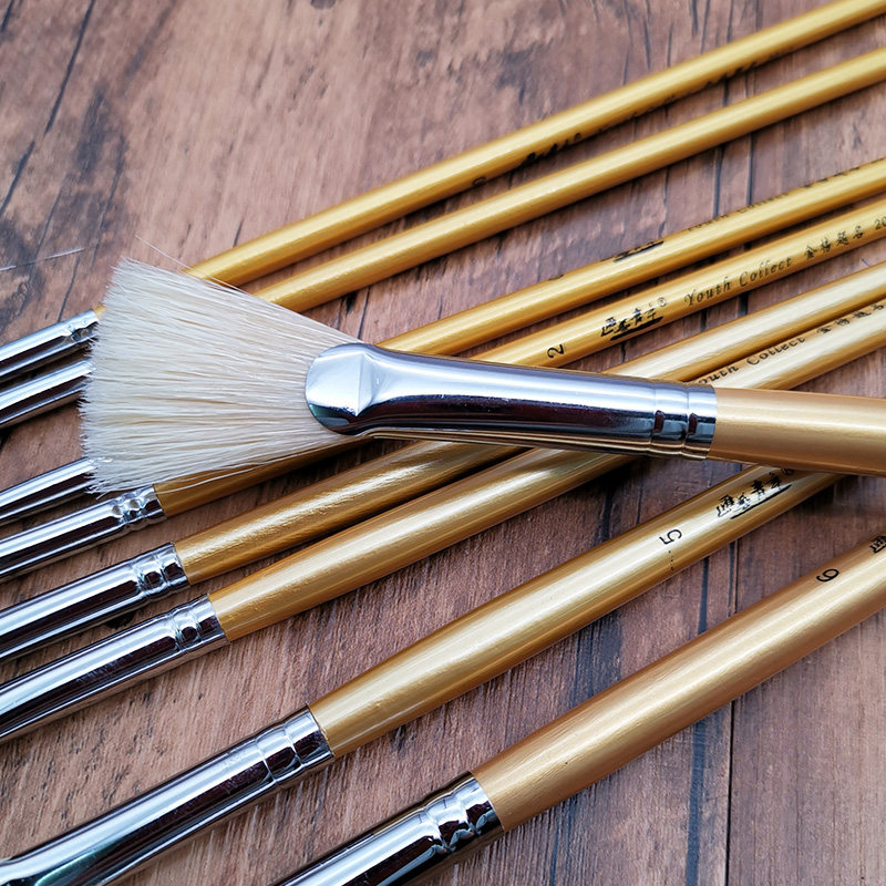 Sector Pen Watercolor Pen Pig Mane Suit 6 Students Single Water Powder Propylene Oil Painting Special Sector Pen Ex-gratia