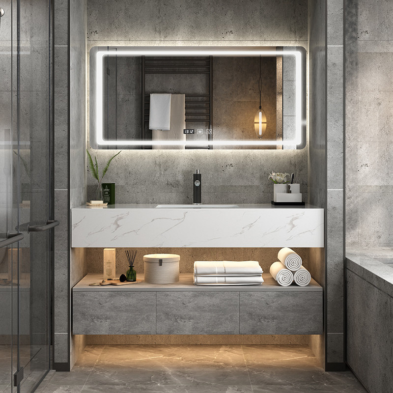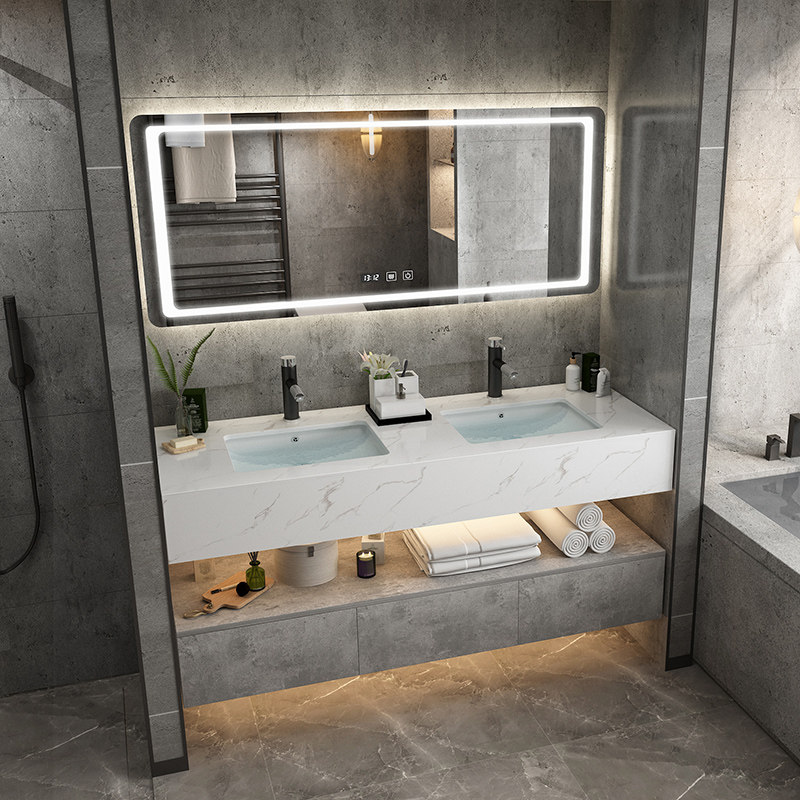 Customized smart bathroom cabinet combination Nordic wash bath cabinet artificial marble countertop double tank washbasin washbasin cabinet
