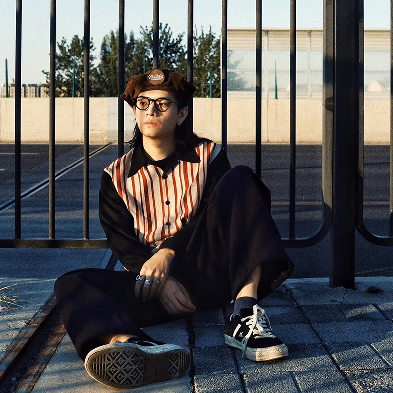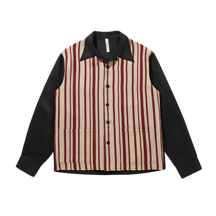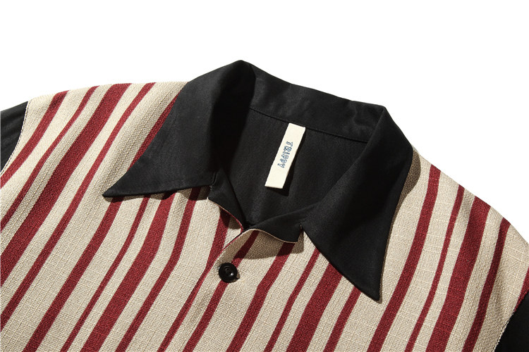 TRIPPY genuine silk feeling heavy sand washed cotton splice striped flax American retro Cuban collar Long sleeves shirt