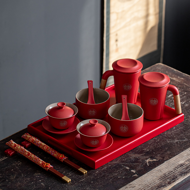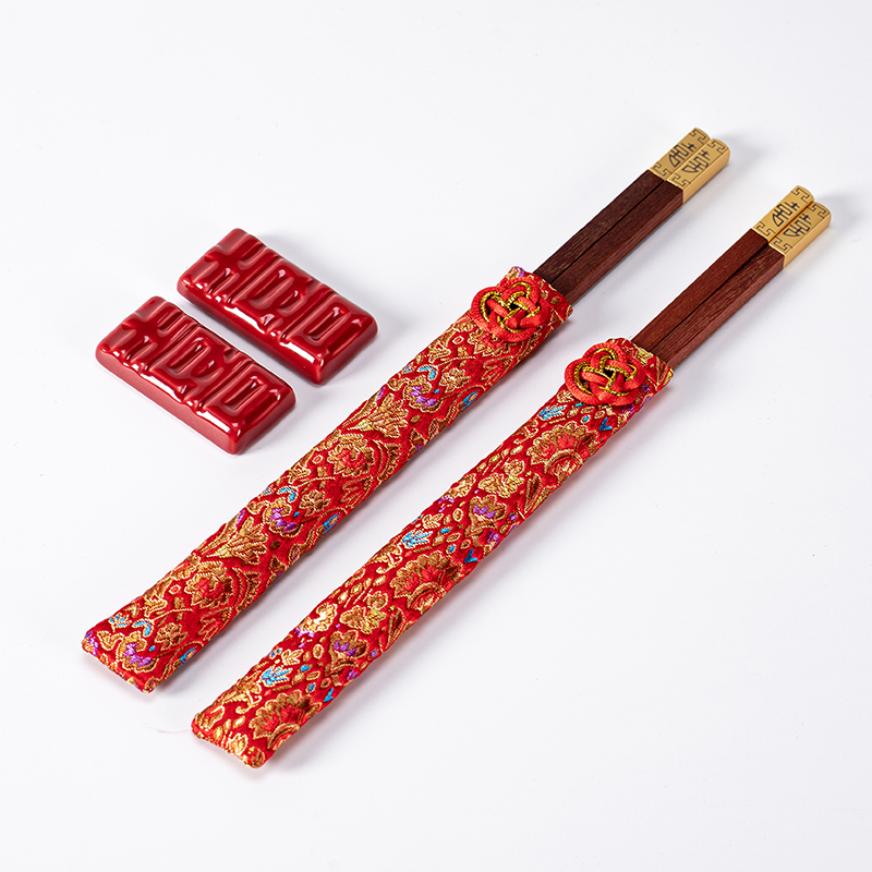 Wedding Mahogany Chopsticks Double Happiness Ceramic Chopstick Holder Chinese Style Home Healthy Solid Wood Tableware Wedding Supplies Daquan