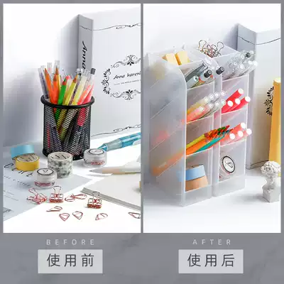 Slant style pen holder pupils ins desktop stationery storage pen holder storage box multi-functional makeup brush bucket large capacity Children creative fashion cute Nordic personality simple four-frame multi-grid ramp