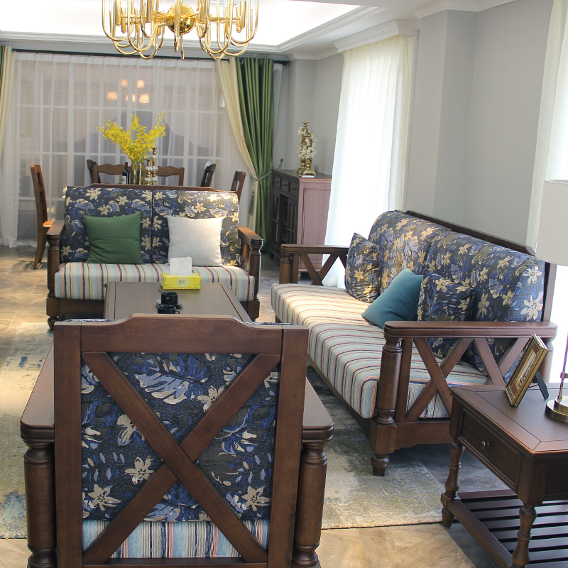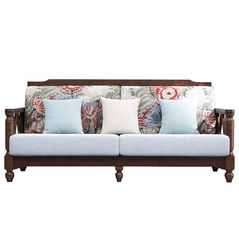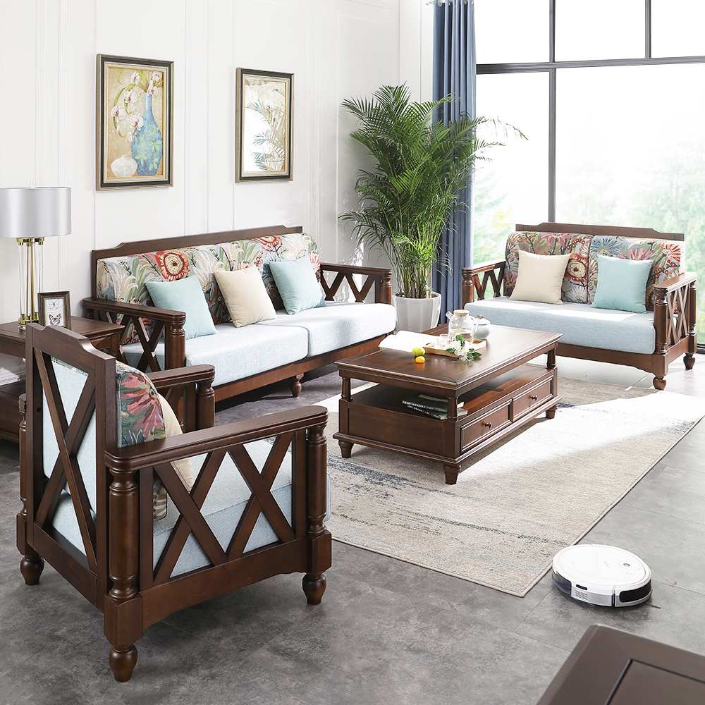 American solid wood fabric sofa 123 combination three-person small apartment retro country living room white solid wood furniture