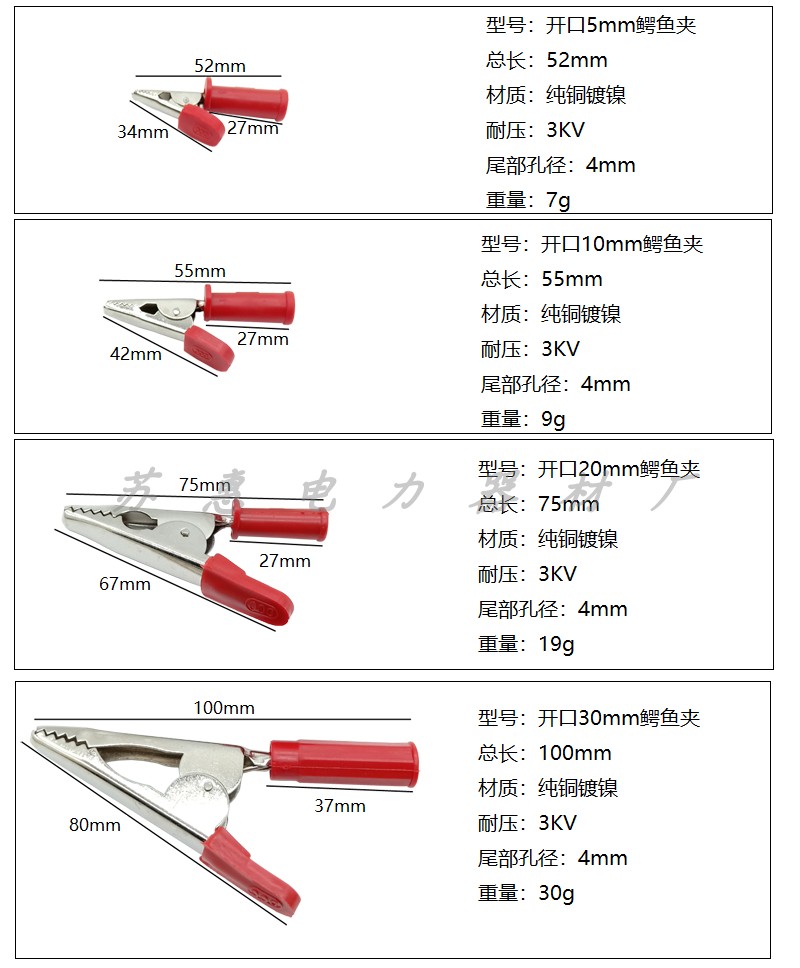 Opening 5mm crocodile clip opening 10mm crocodile clip opening 20mm crocodile clip opening 30mm crocodile clip