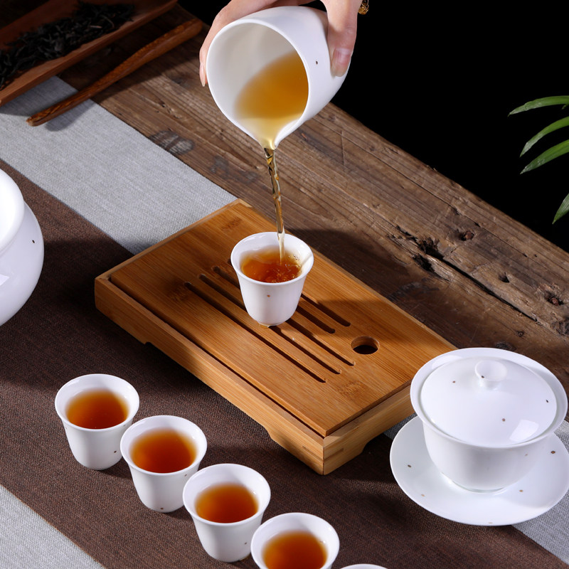 Light luxury style sweet white glaze ceramic Kung Fu tea set complete set of Jingdezhen tea cup high white glaze high-grade gift box