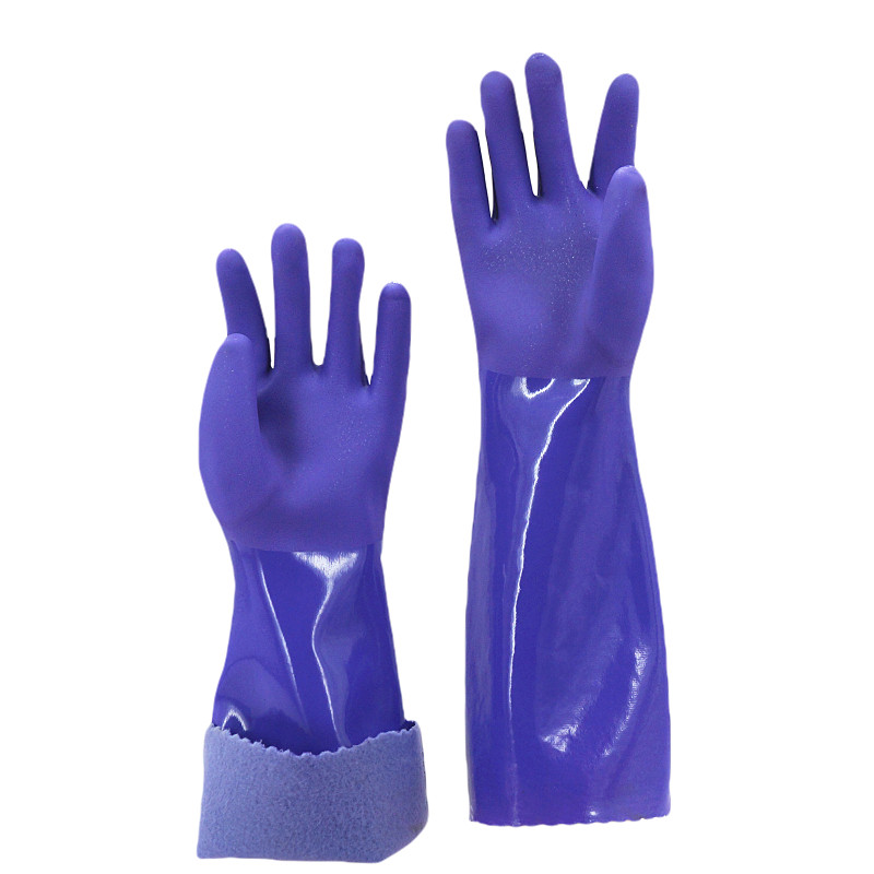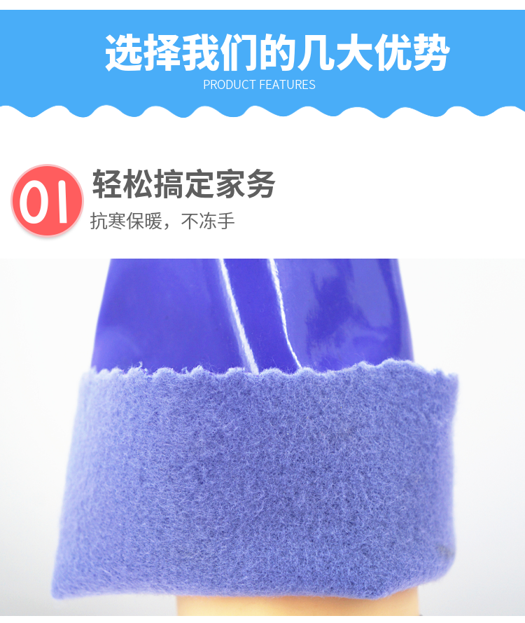 One piece velvet warm thickened and long durable rubber dishwashing gloves plus fleece washing clothes plus cotton clean aquatic rubber