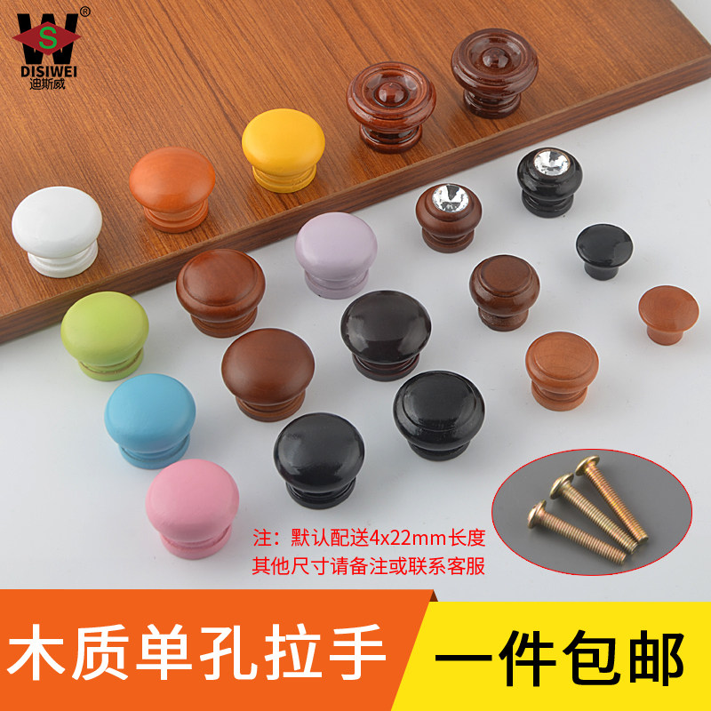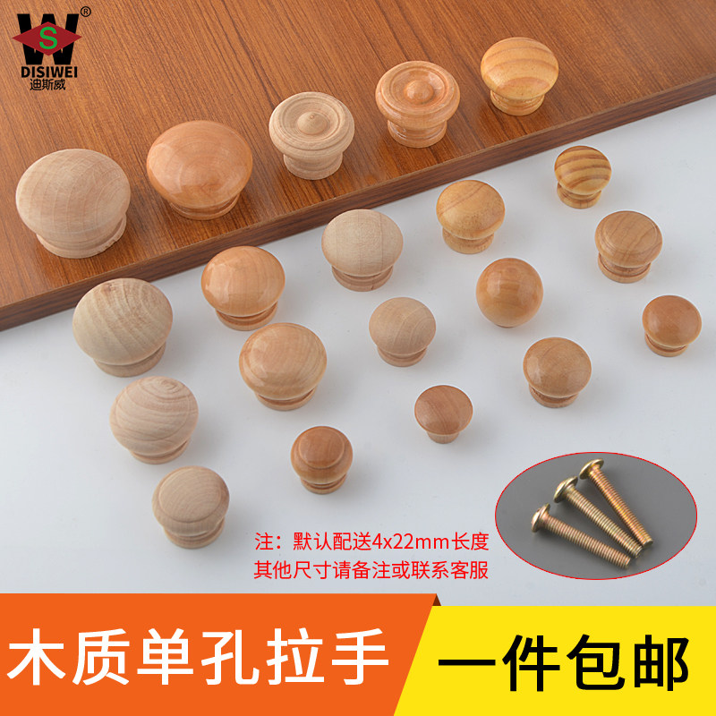 Single-hole solid wood pull handle small handle integral cabinet handle cabinet door round wood handle drawer handle original wood mushroom handle