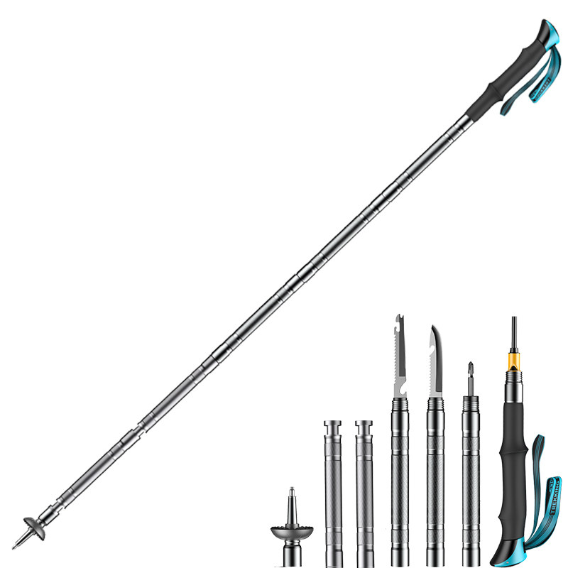 Multifunctional walking stick walking stick defensive stick with knife ultra-light telescopic folding outdoor hiking mountain climbing extended crutch stick